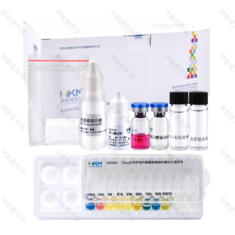 HKI006 | Набор для биохимической идентификации для E.coli O157:H7/NM (10 тестов) | Реакции: сорбитол, целлобиоза, раффиноза, LST-MUG, цитрат (Симмонса), лизиндекарбоксилаза, орнитиндекарбоксилаза, контроль аминокислотных декарбоксилаз, образование индола, Фогеса-Проскауэра, метиловый красный, агар TSI, тест на подвижность. | Биохимическая идентификация E.coli O157:H7/NM. |