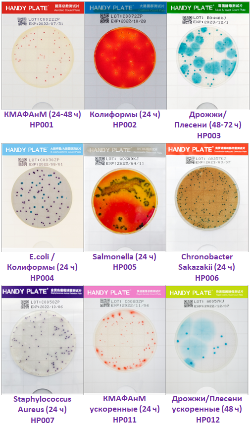 Тест-пластины Handy Plate™ — это современное решение для ускоренного и точного обнаружения и подсчёта санитарно-показательных и патогенных микроорганизмов. Они идеально подходят для анализа продуктов питания, сырья, напитков, воды и других объектов окружающей среды. Являются аналогами известных тест-систем Петрифильм (Petrifilm™)